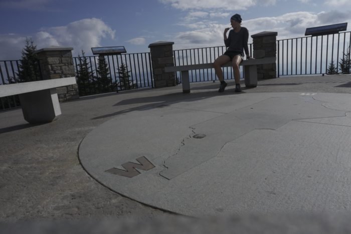 I had been to Mount Mitchell’s summit parking lot by car, but it was certainly before I myself was able to drive. The summit to the tallest peak east of the Mississippi was a mere 0.3 miles up a paved path, and the relaxed tread was a welcome change from the harsh rocks and roots of the Black Mountain Crest Trail. As I approached the summit, marked by an observation tower, I took off my pack, left it behind, and laid down square in the middle of the cardinal direction emblem set into the floor. I laod there for some time, catching my breath and sweating profusely into the white and gray stone beneath me.